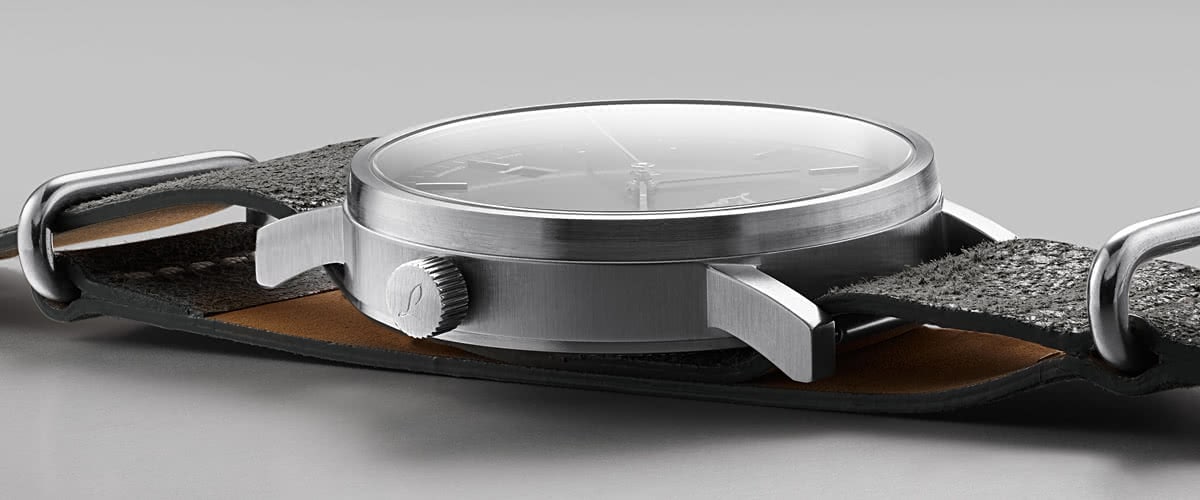 - Edelstahlgehäuse, gebürstete Optik, flaches Mineralglas, Mineralglasboden