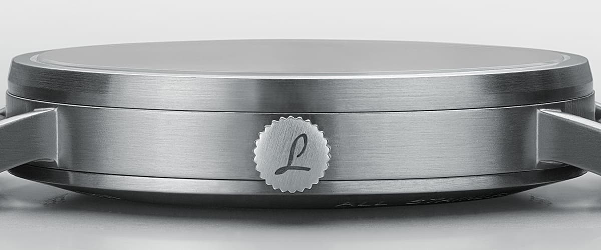 - Edelstahlgehäuse, gebürstete Optik, flaches Mineralglas, Mineralglasboden