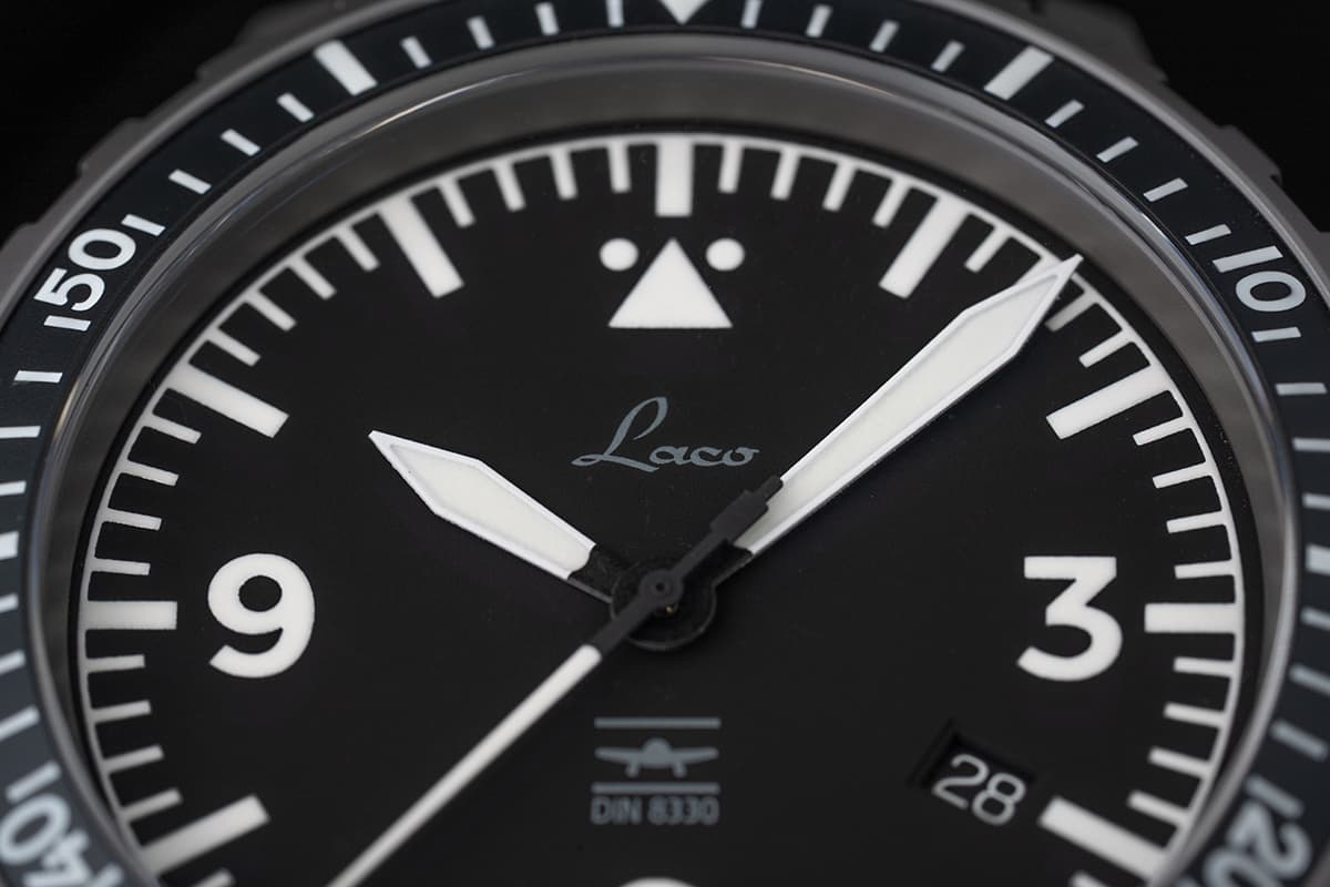 - Schwarz matt, aus Weicheisen, arabische Ziffern und Indexe mit Leuchtmasse Superluminova C1 belegt