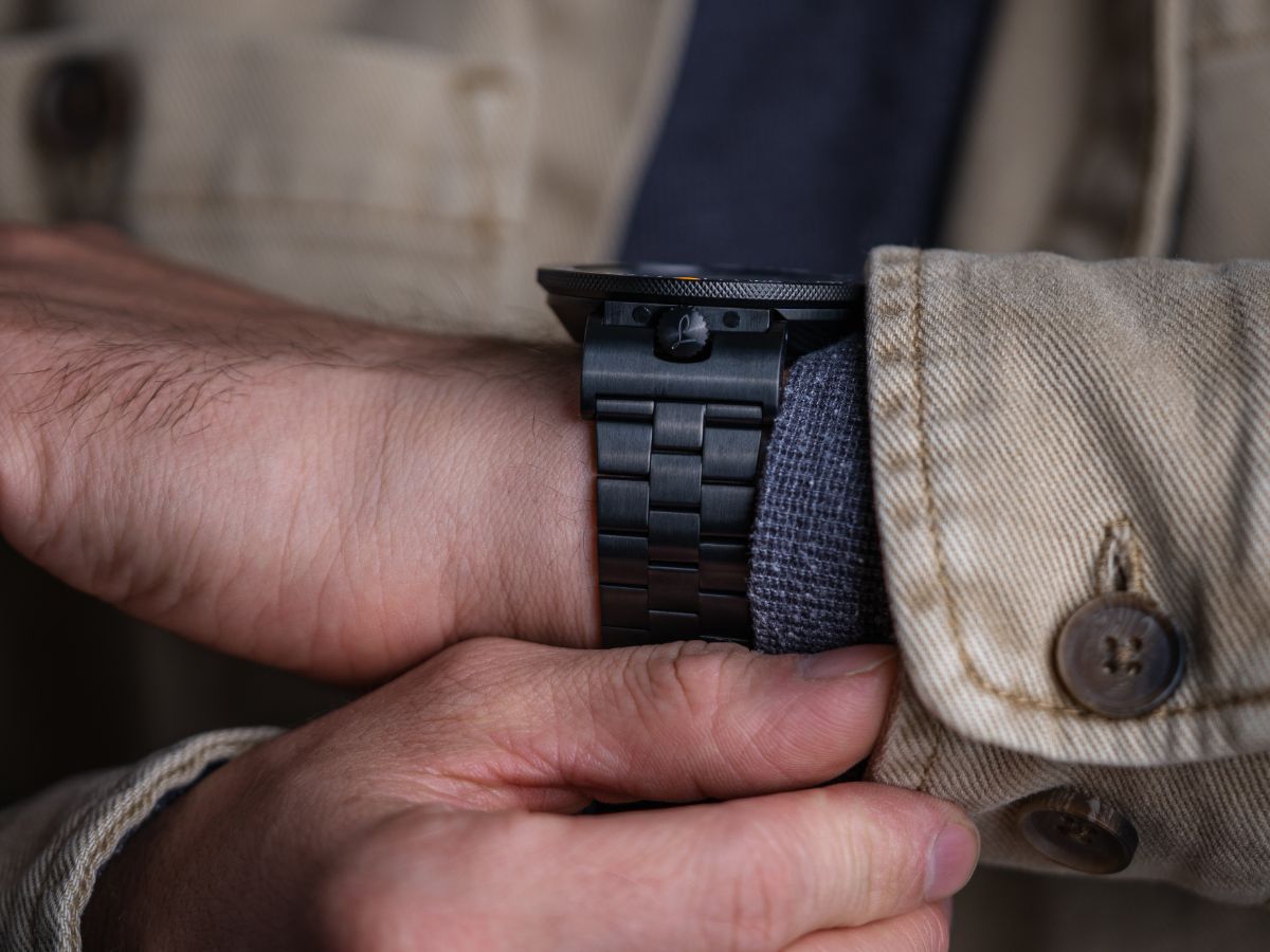 - Schwarzes Edelstahlarmband mit schwarzer DLC Beschichtung,