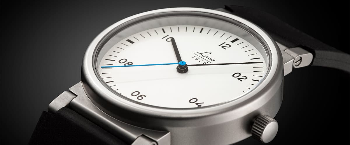 - Stunden- und Minutenzeiger schwarz, Sekundenzeiger blau