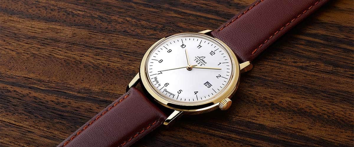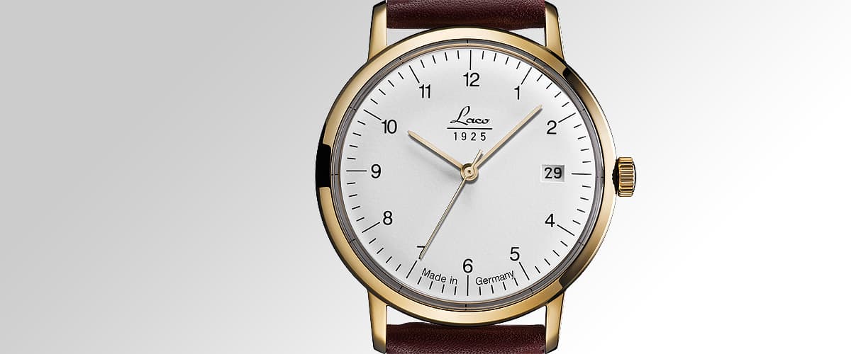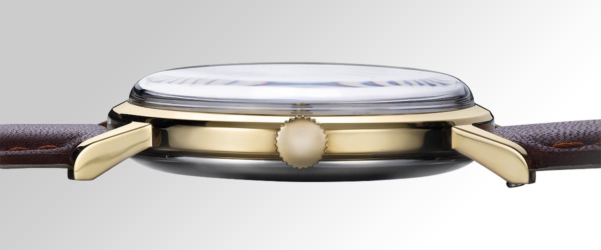 - Edelstahl poliert vergoldet, Mineralglas, Boden mit gehärtetem Mineralglas, 5 ATM, Ø 38 mm, 20 mm Bandanstoß