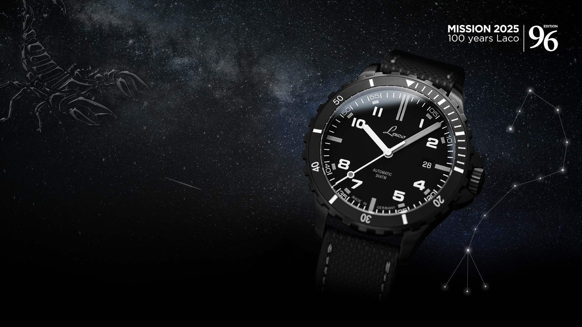 Laco places special emphasis on values such as quality, durability, and bold design, resulting in uncompromising mechanical watches made in Germany that the wearer can rely on at all times and in all conditions. With the Edition 96, a refined timepiece was created that completely satisfies the high demands and requirements in the outdoor sector and leaves behind both a stylish and fashionable impression thanks to the timeless design and technical properties.