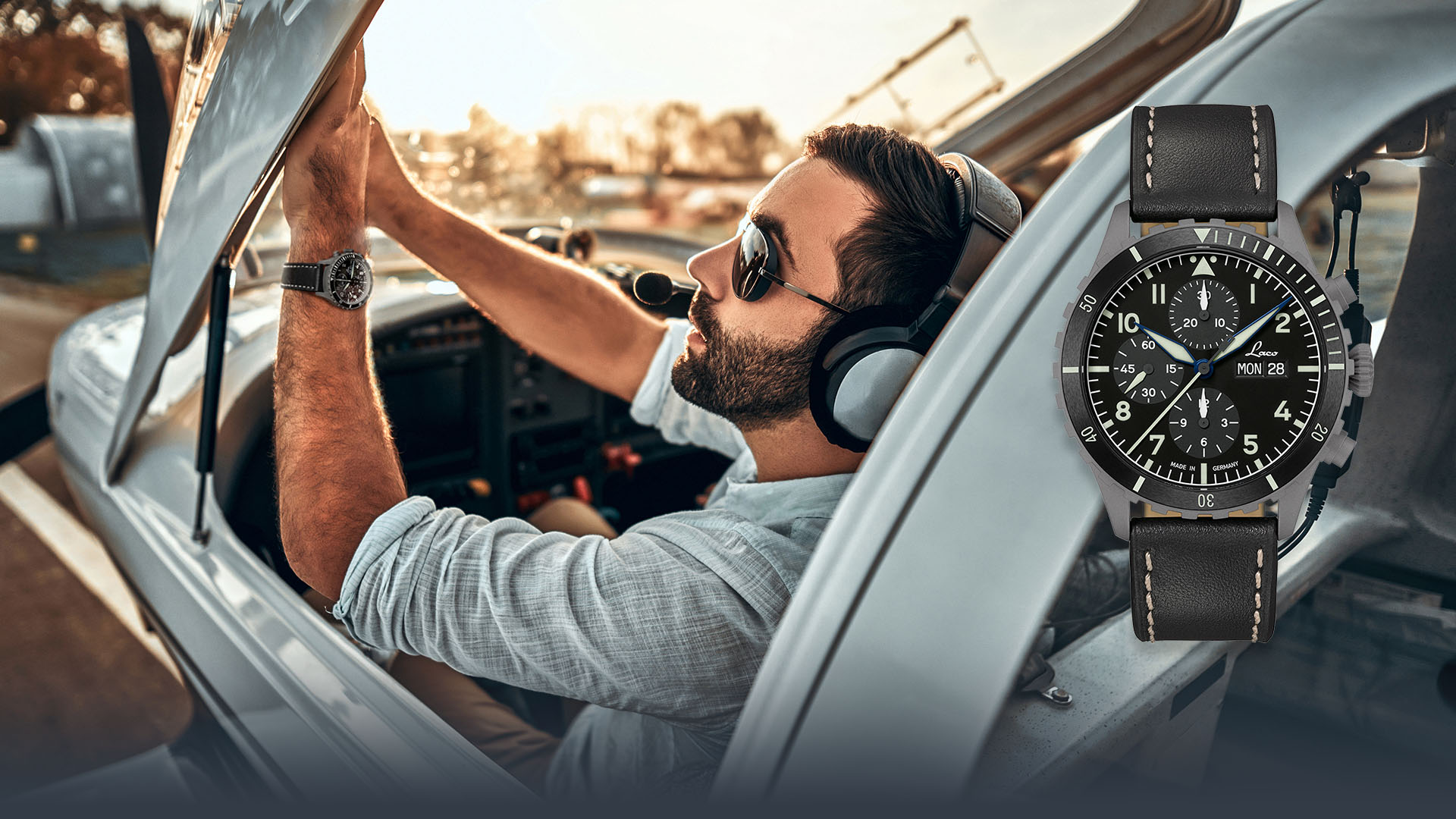 Crafted in our manufacture by experienced watchmakers, the Kiel Sport combines dynamic elegance with functional sophistication. With its 43 mm case, the Laco 500 chronograph movement, and a particularly striking design, it excels both in daily wear and during outdoor activities. It captivates not only pilots but also anyone who appreciates the extraordinary.