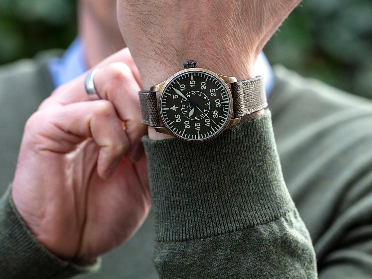 Esta correa textil de "canvas"(lona) rústica convierte cualquier reloj en una atracción especial. La parte superior de color de camuflaje armoniza con el aspecto fresco y vintage de los relojes de piloto de Laco en particular. La parte interior de cuero suave ofrece una comodidad de uso agradable. Las costuras discretas del color de la correa se integran armoniosamente en el conjunto. El acabado de laca en los bordes evita que la correa se deshilache. Con el tiempo, esta correa adquirirá su propia pátina individual a través del desgaste. La hebilla de acero inoxidable también lleva grabado el logotipo de Laco.