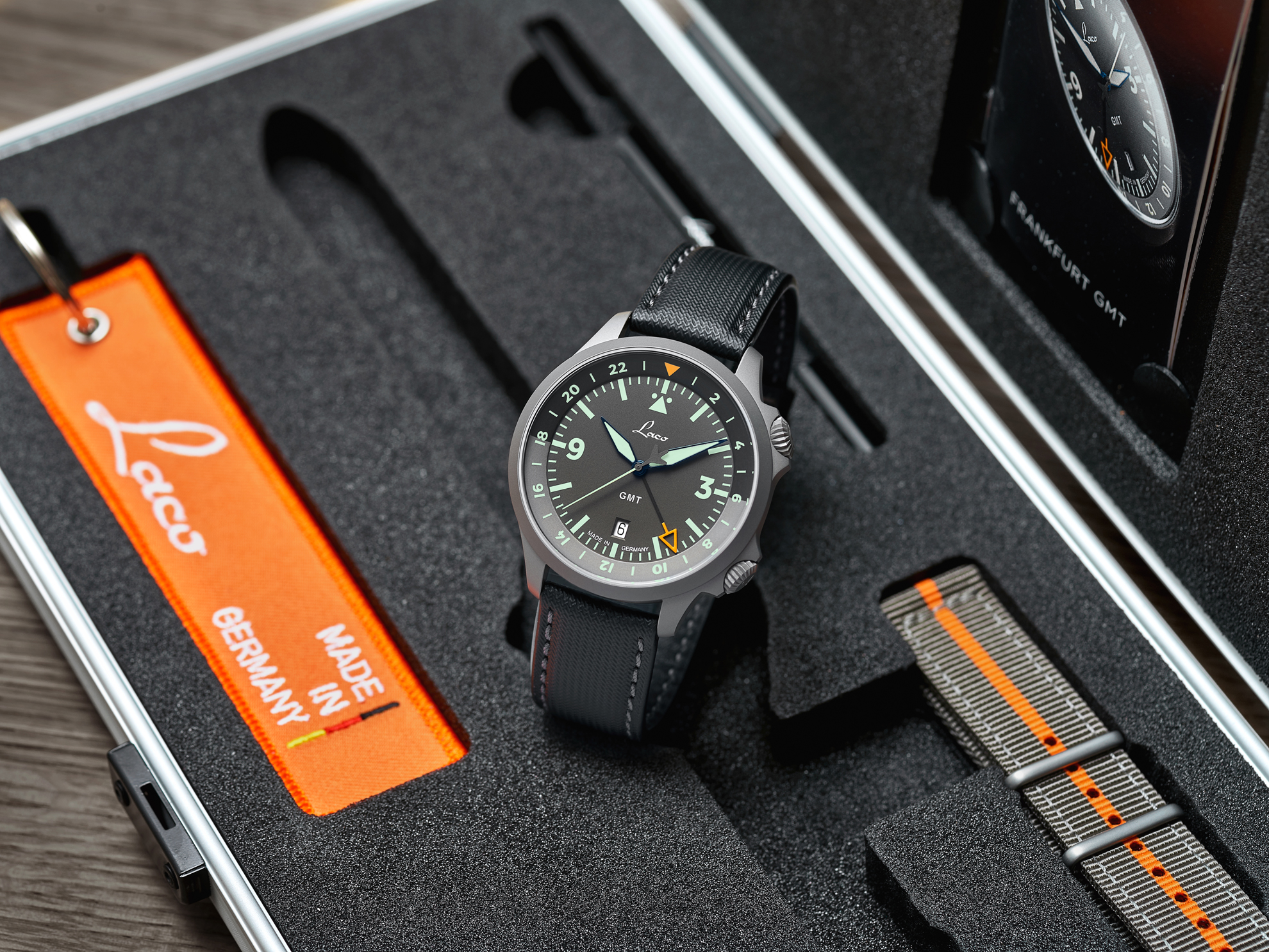 This high-quality watch strap is made from an innovative material with a microfiber-like structure that not only looks modern thanks to its textile surface, but is also extremely hard-wearing and water-resistant. Thanks to the special water-repellent coating, the strap is ideally suited to a wide range of conditions. The underside made of soft leather is also waterproof, so that the entire strap is optimally protected against moisture. The light padding also ensures a high level of comfort. The strap fits perfectly with our “Frankfurt GMT” models and complements their technical, modern look.