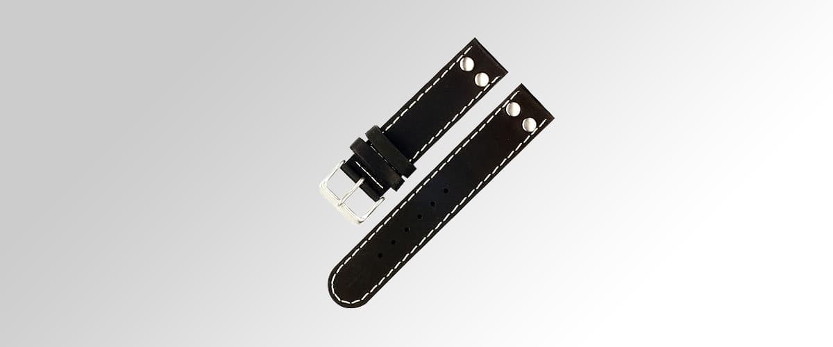 The perfect leather watch strap for our pilot watches in the model series. It is made of robust bovine leather and through-stitched in a light-coloured thread. To maintain the typical character of the pilot watch, each side of the strap has two decorative rivets. The fastening in stainless steel is also engraved with the Laco logo. Please note that leather is a natural product, which means that each watch strap may have minor colour differences and irregularities (the product photo is for reference only).