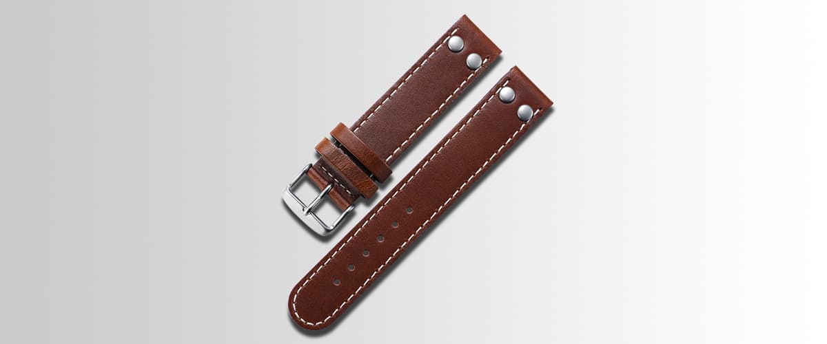 The perfect leather watch strap for our pilot watches in the model series. It is made of robust bovine leather and through-stitched in a light-coloured thread. To maintain the typical character of the pilot watch, each side of the strap has two decorative rivets. The fastening in stainless steel is also engraved with the Laco logo. Please note that leather is a natural product, which means that each watch strap may have minor colour differences and irregularities (the product photo is for reference only).