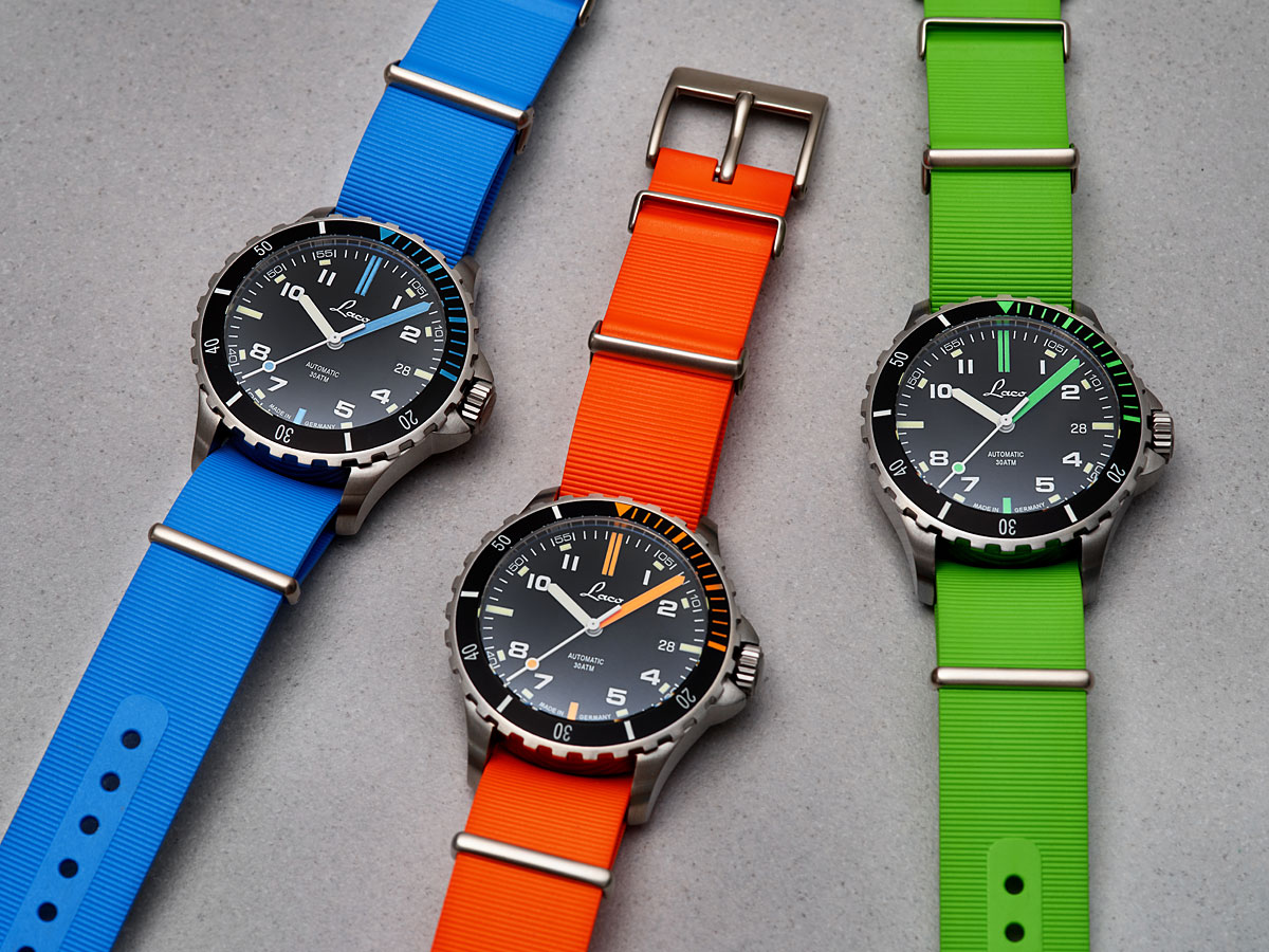 Green one-piece watch strap in natural rubber with a ribbed texture, buckle in stainless steel with engraved "Laco" logo, lug width 20 mm, strap length 260 mm (without buckle), strap width approx. 1.6 mm This pull-through watch strap in the Nato style adds an extra sporty look to any watch! The watch strap is made from non-allergenic natural rubber, which is especially soft, tear-resistant and watertight. This makes the watch strap particularly suited to our sport watch models, Himalaya and Amazonas. Special note: To give the material a more pleasant, lasting smell, a vanilla rubber is mixed with vanilla aroma during production. Important: Please note the thickness of the watch strap. It should not be any thicker than the distance between the spring bar and the watch housing, as this could make it very difficult to pull the strap through.