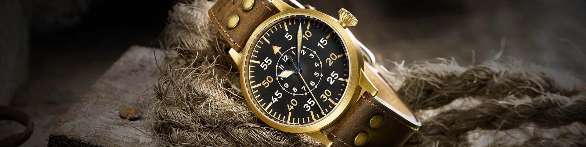 With its history in the production of pilot and navigation watches and with its "Erbstück” model series, Laco has long been a first address for the lovers of vintage watches. Each "Erbstück” watch is processed and aged by hand. The new bronze watch, whose face, hands and leather strap have also been individually aged, continues this tradition in a noble way. With its flamboyant case diameter of 45 millimetres, the pilot watch resembles the models from the past, worn by the pilots on their pilot jackets. The case is sand-blasted. The engraved case bottom is made of stainless steel. The Laco bronze watch is available in the design of type A and B. It is available with the Laco 01 handwinding, which is based on the ETA 2801.2 and with the Laco 24 automatic movement based on the ETA 2824.2. Lacos new bronze pilot watches are made with their authentic material for those men who love adventure and nature. In the open, the fascinating patina forms particularly fast. The vintage look underlines true to the original leather straps in the heritage style with high wearing comfort.