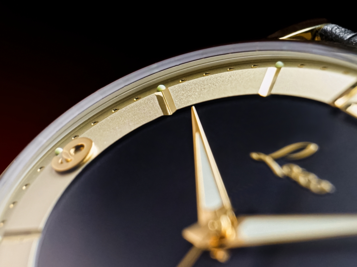 gold-colored minute track with Superluminova C3 hour dots, raised “Laco” logo - Hands: