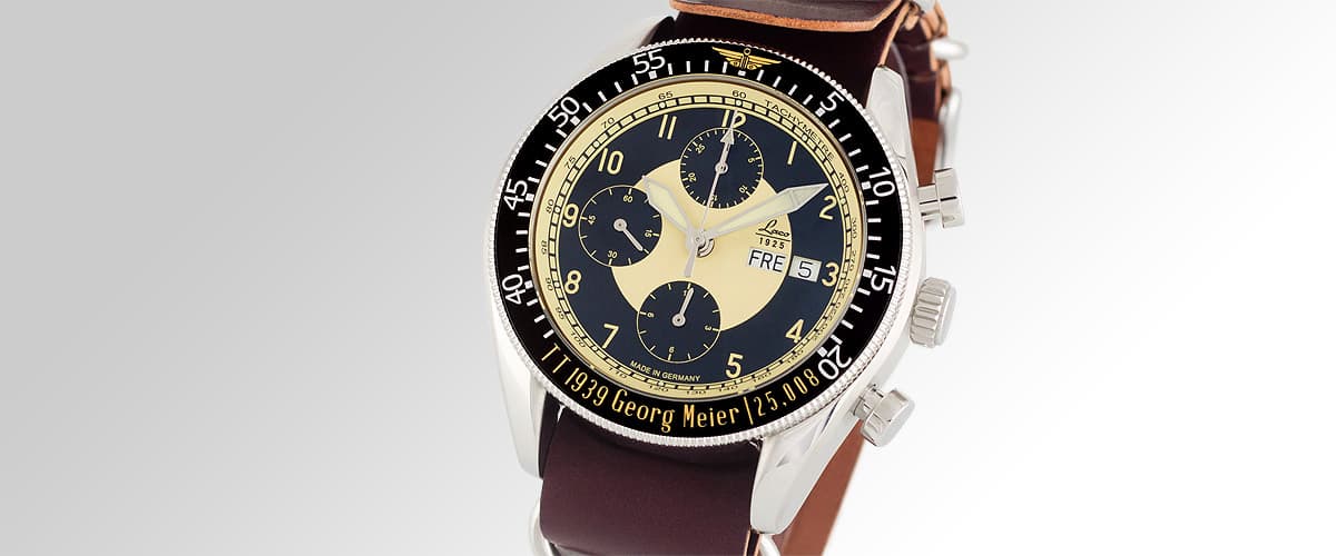 As a tribute to an exceptional racer, his impressive performance, and the outstanding dependability of his machine, LACO is proud to present its latest novelty, the Mission Manx Limited Edition Chronograph.