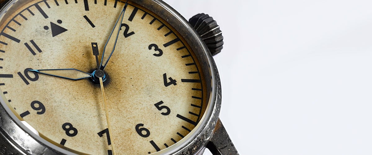 Laco has developed a unique method to achieve this special look, creating a natural patina on the watches. Scrapes, scratches, discolouration and wear and tear can be reproduced to appear as they do on old originals. All components - case, dial, hands or strap - are aged invidually and by hand, using a work-intensive procedure without mechanical aids, so the ageing looks absolutely authentic and none is alike. This gives the watches the appeal of an historic timepiece, making each one completely unique - as individual and distinctive as its owner!