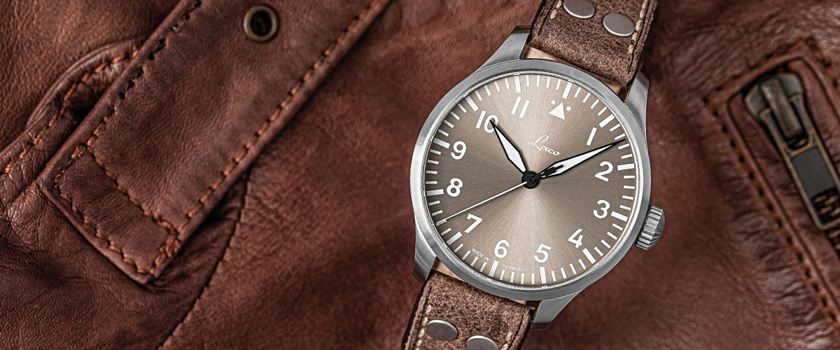 The "Augsburg Taupe" limited to 500 pieces together with the Laco "Aachen Taupe" is the new interpretation of our popular "Augsburg" pilot watch. The taupe dial is elegantly staged by the sunburst finish and lends the watch its unmistakable sporty-elegant character.