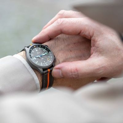With the proven Laco design, a contemporary case diameter of only 40 millimetres and the high-precision quartz movement, it is a modern alternative to the original pilot's watches. With a height of only 9 millimetres, the Genf.2 MB fits under the sleeve of a pilot's jacket as well as under a shirt cuff. The hands, numbers and indices are coated with Superluminova C3 for optimal readability. The Swiss quartz movement from Ronda ensures precise timekeeping at all times.