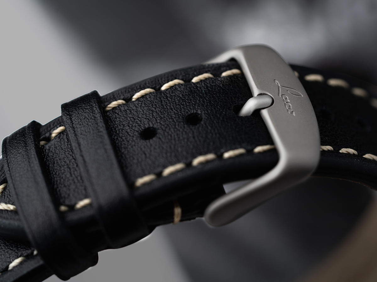 Black calf leather strap, dark sandblasted buckle with Laco logo