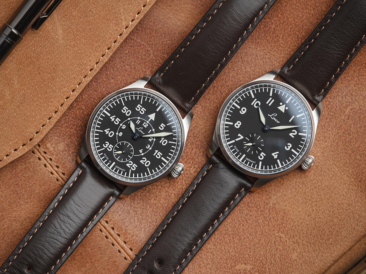 - handwinding movement Laco 261 bridges with Côtes de Genève, thermical blued screws, ratchet wheel and crown wheel with sun ray finish, ratchet wheel with engraved Laco Logo